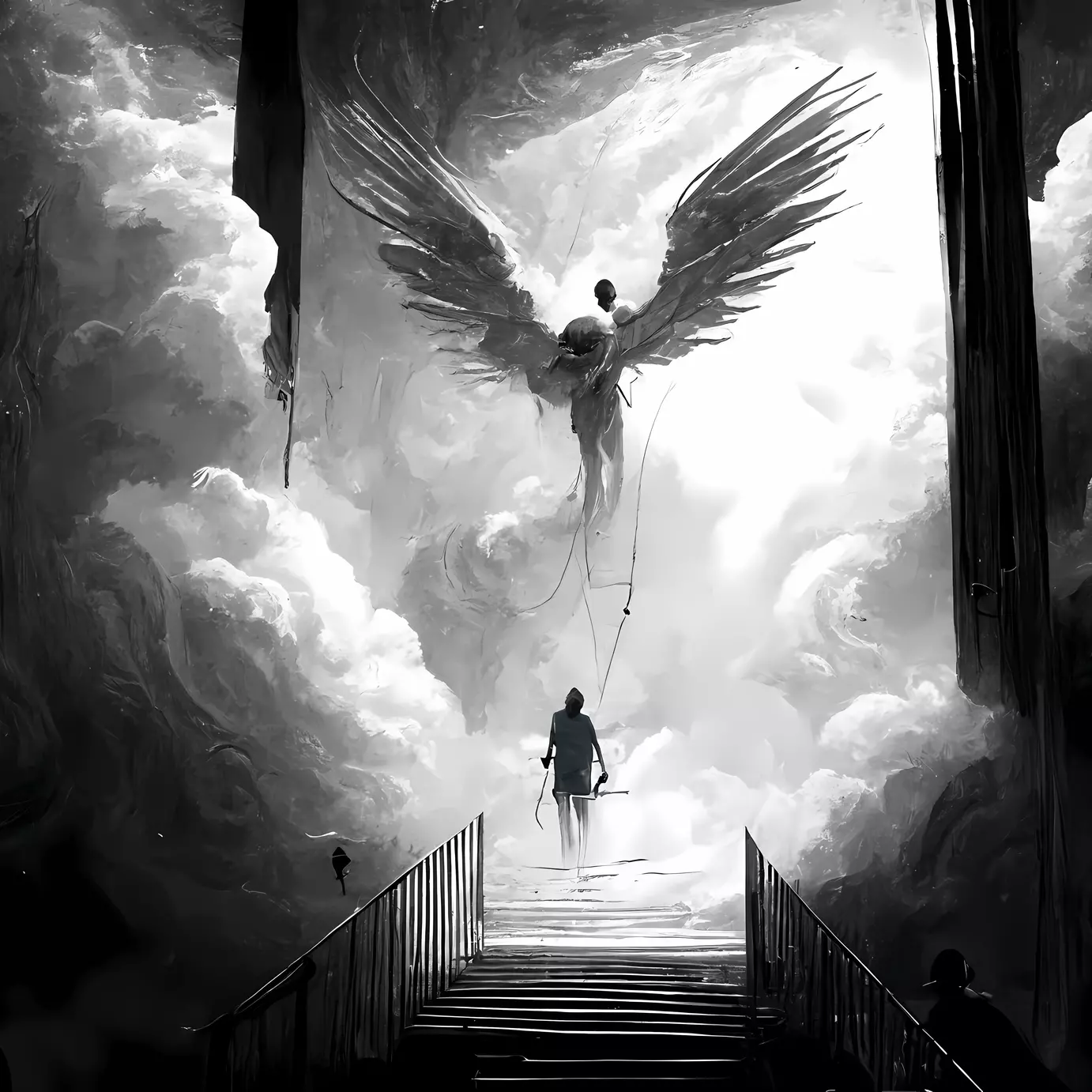 Angel and Ladder — 30 x 30 cm Canvas